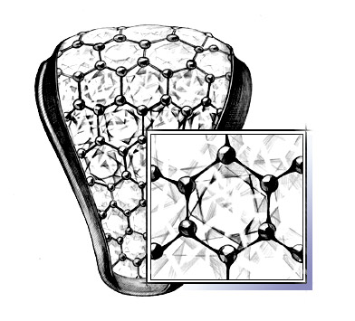 A pave setting is a style of setting that sets the diamonds almost flush with the surface of the mounting, utilizing raised beads of the surrounding metal to group individual stones in such a way as to give the impression of a continuous diamond surface.