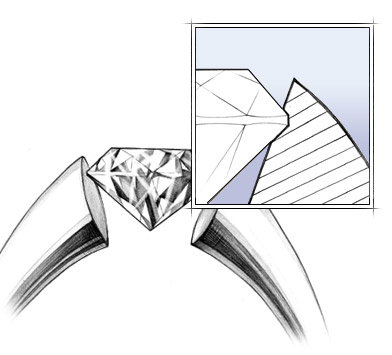 At Simayof you may experience our version of the tension setting in our Floating Diamond Collection. This unique setting style is made possible through the use of a special platinum alloy.